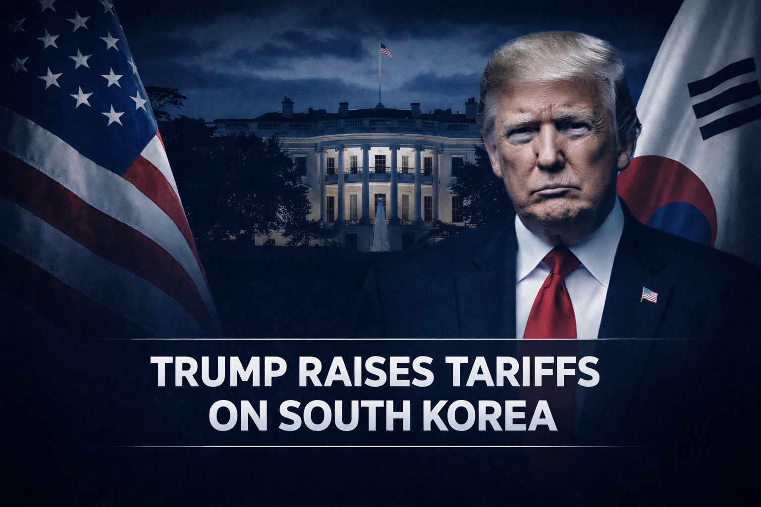 President Trump said the United States would increase so-called “reciprocal tariffs” on South Korean goods from 15% to 25%. He criticized South Korea’s National Assembly for what he described as delays in implementing a bilateral trade agreement finalized late last year.